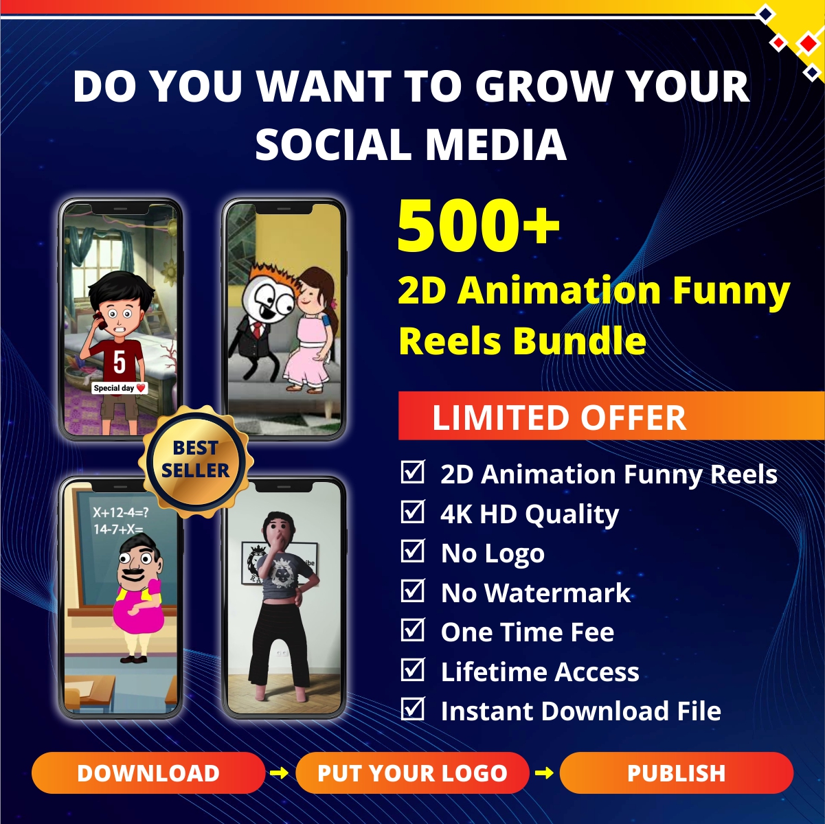 • High-Quality Animations: Each reel is crafted with professional-grade 2D animation techniques, ensuring smooth and visually appealing content.